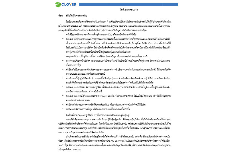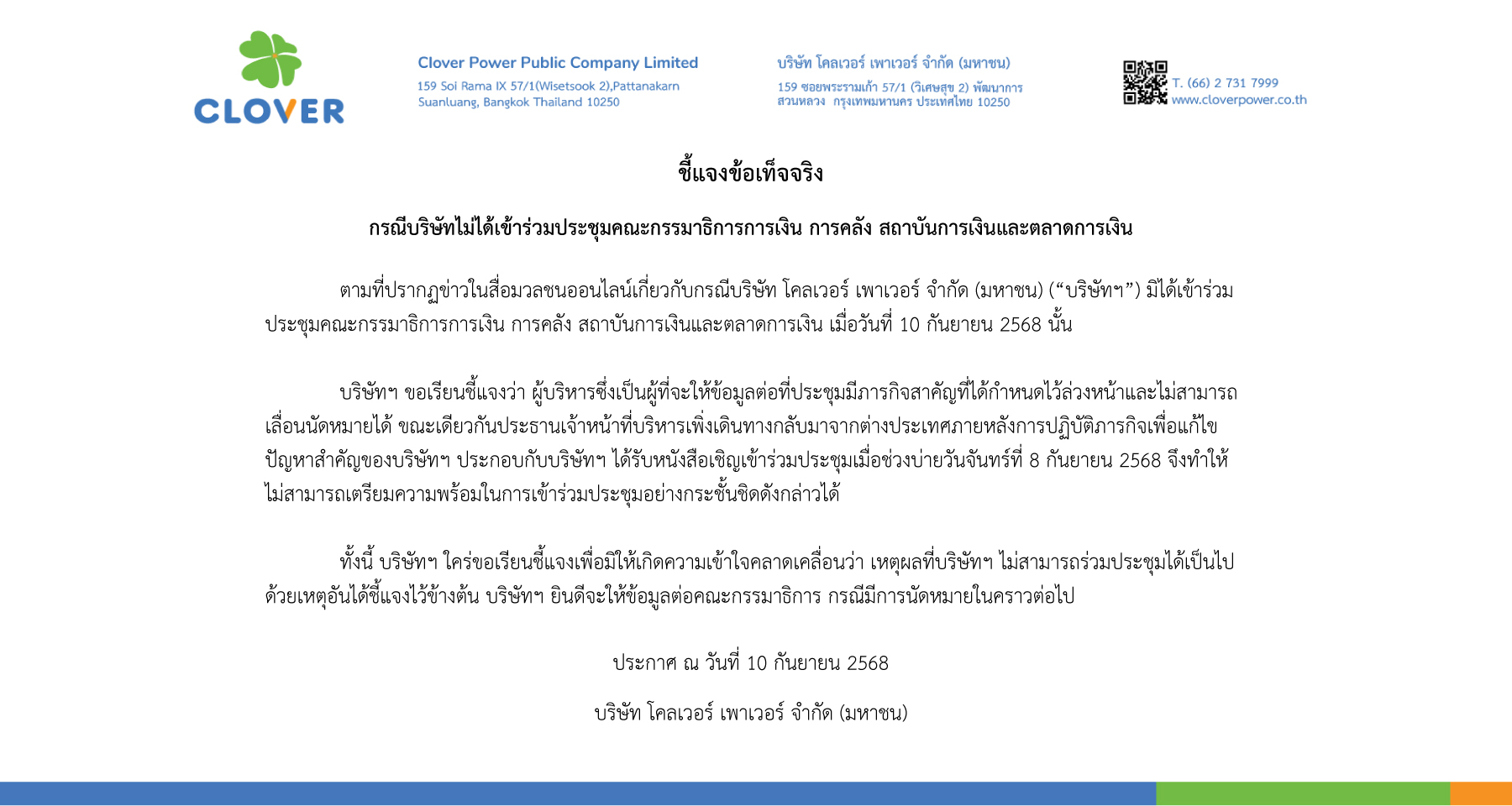 ชี้แจงข้อเท็จจริง กรณีบริษัทไม่ได้เข้าร่วมประชุมคณะกรรมาธิการการเงิน การคลัง สถาบันการเงินและตลาดการเงิน