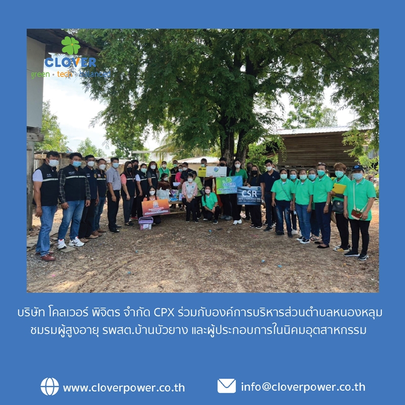 วันที่ 14 มิถุนายน 2565 บริษัท โคลเวอร์ พิจิตร จำกัด CPX ร่วมกับองค์การบริหารส่วนตำบลหนองหลุม ชมรมผู้สูงอายุ รพสต.บ้านบัวยาง และผู้ประกอบการในนิคมอุตสาหกรรม รวมทั้งผู้นำชุมชนท้องที่ ท้องถิ่น เข้าเยี่ยมผู้สูงอายุและผู้ป่วยติดเตียงในตำบลหนองหลุม อําเภอวชิรบารมี จังหวัดพิจิตร จำนวน12 หมู่บ้าน รวมทั้งหมด 24 ราย หนึ่งในภารกิจที่โรงไฟฟ้าต้องการเป็นส่วนหนึ่งในการช่วยพัฒนาและดูแลชุมชนรอบโรงไฟฟ้าและรอบนิคมอุตสาหกรรม