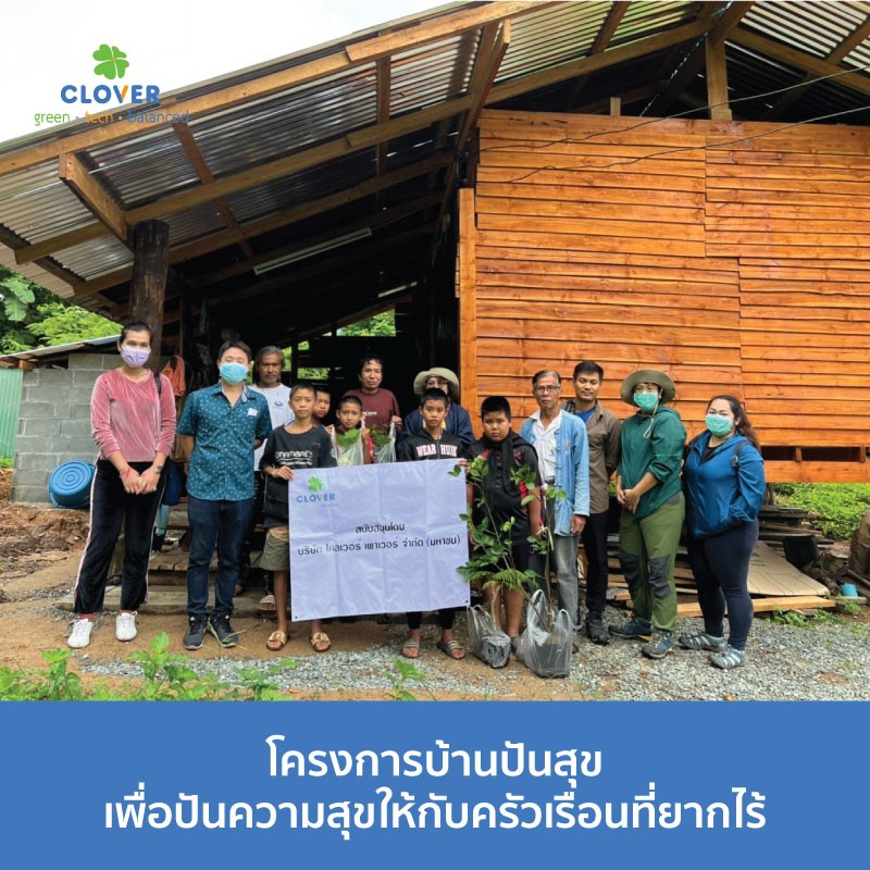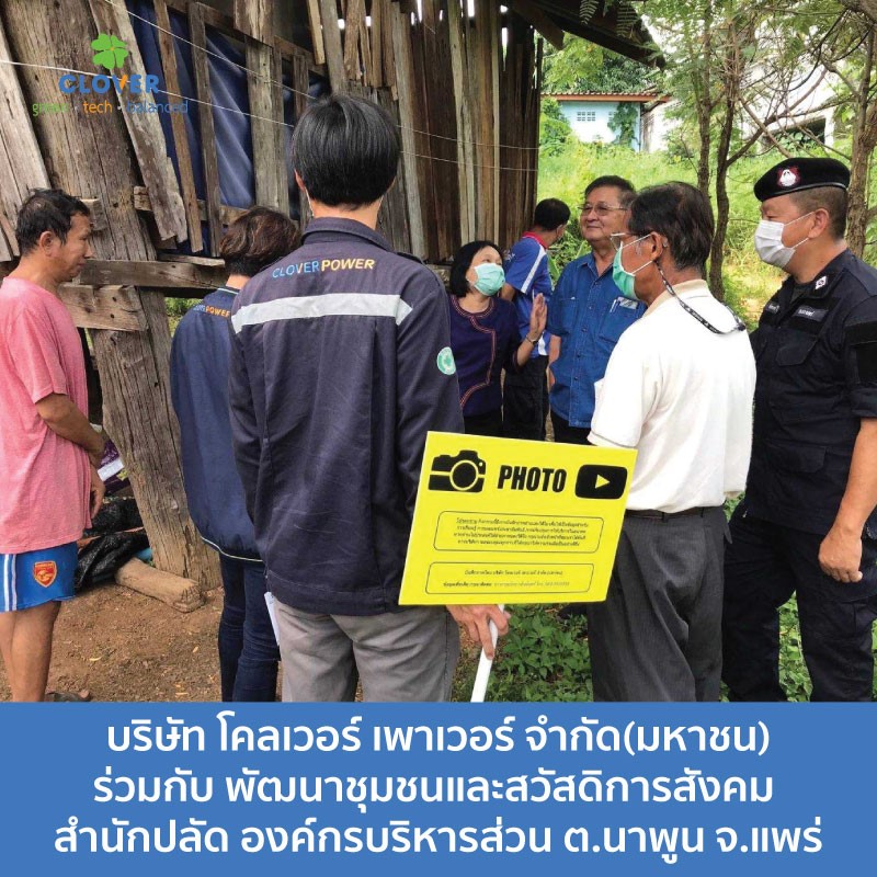 วันที่ 27 สิงหาคม 2565 บริษัท โคลเวอร์ เพาเวอร์ จำกัด (มหาชน) ร่วมกับพัฒนาชุมชนและสวัสดิการสังคม สำนักปลัด องค์การบริหารส่วนตำบลนาพูน สนับสนุนโครงการบ้านปันสุข เพื่อปันความสุขให้กับครัวเรือนที่ยากไร้ และสภาพบ้านที่ไมมีความมั่นคงแข็งแรง รวมทั้งไม่เหมาะในการพักอาศัย เพื่อส่งเสริมชีวิตความเป็นอยู่ให้ดีขึ้น รวมทั้งการมอบพืชผักสวนครัวสำหรับให้ปลูกรับประทานภายในครัวเรือน ทางโคลเวอร์เพาเวอร์ขอเป็นส่วนหนึ่งในการช่วยพัฒนาความเป็นอยู่ ให้แก่ชาวบ้านรอบโรงไฟฟ้าตำบลนาพูน อำเภอวังชิ้น จังหวัดแพร่ เพื่อให้มีความเป็นอยู่ที่ดีขึ้นต่อไป